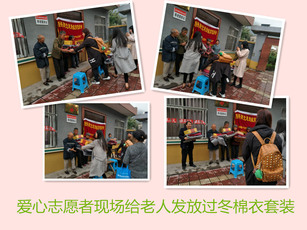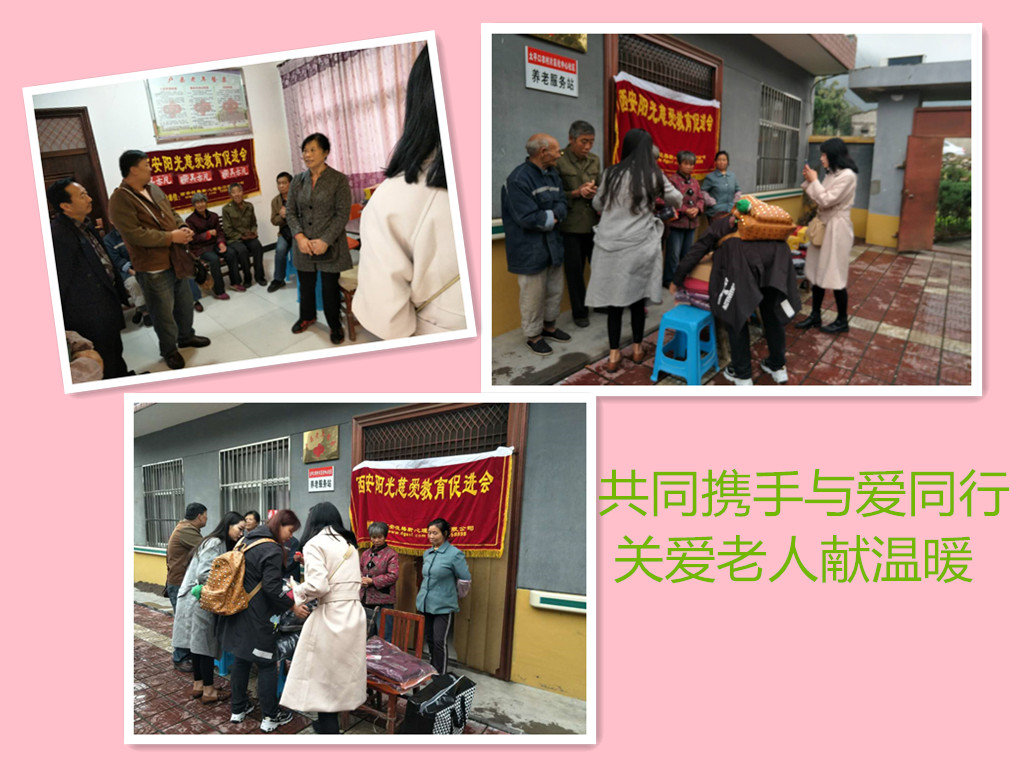 伴着绵绵的秋雨,远离都市的喧嚣,我们阳光慈爱教育促进会和歌星吴亦凡陕西公益小分队一起踏上去太平敬老院路程,一路与秋雨相伴,我们驾车1个多小时到达目的地。太平敬老院坐落在太平峪口,沿河道有着十多间平房,环境优美,空气清新。院领导早早已经在那里迎接。因为下着秋雨,天气有些寒凉,我们的志愿者的爱心温暖感染了这里,看到老人面带笑容在那里等待。我们把捐赠的物资摆放之后,有序发放,老人领到自己的棉衣、棉裤、新鞋和保暖内衣,个个都高兴的笑容满面。看着老人开心的笑脸我们和志愿者一起合影留念。